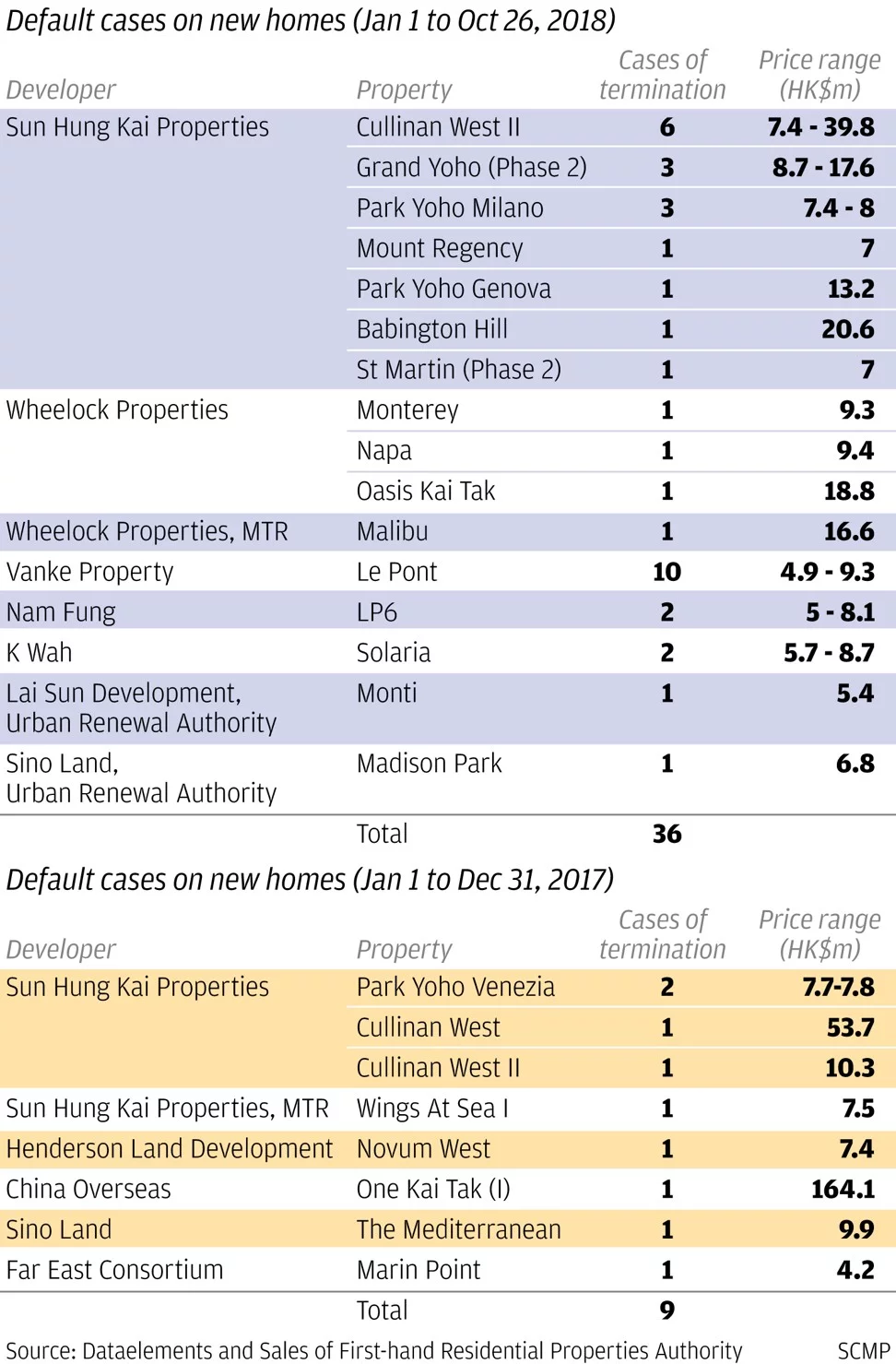 根据香港房地产信息网站Dataelements数据显示,截至10月26日,今年以来香港已经出现36起购房违约案例,而去年全年仅出现9起。