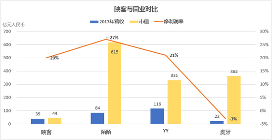 正所谓,没有对比就没有伤害,与陌陌、YY、虎牙等平台相比,映客的估值其实很低,连还未盈利的虎牙也比不上。