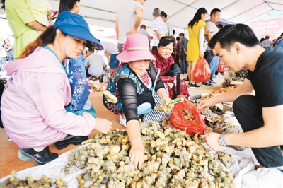 6月7日,广西靖西市传统端午药市在靖西市城区举行,当地群众及靖西周边县市的药农纷纷将自采自种的草药拿到药市出售,药材交易尤为活跃。图为群众在选购药材。 赵京武摄(人民视觉) |