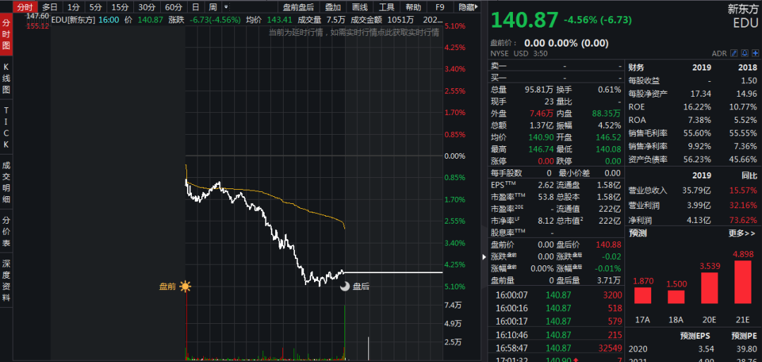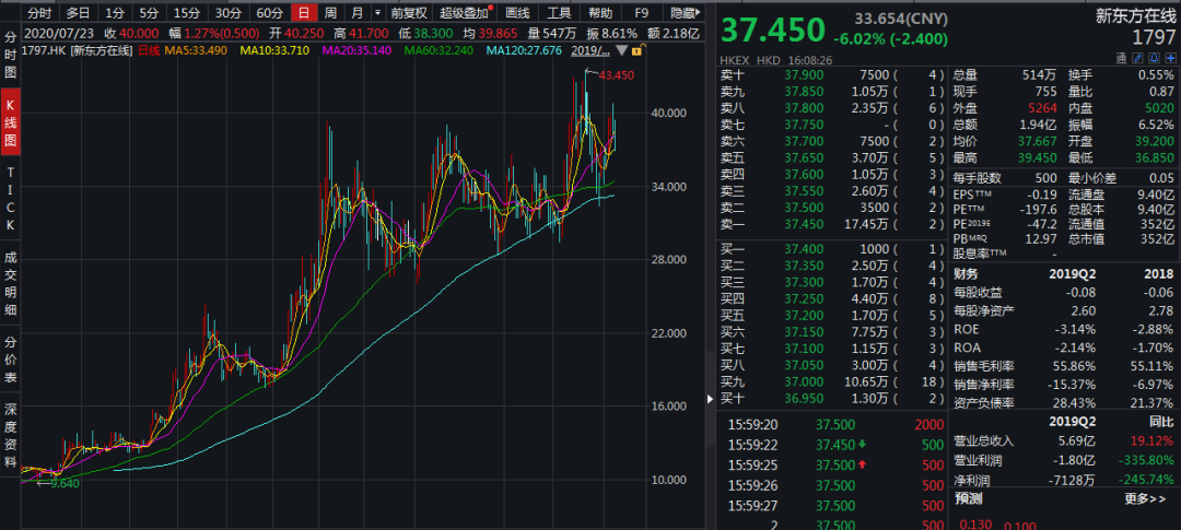 同时,新东方旗下子公司——专业教育在线平台新东方在线(36.8, -0.65, -1.74%)(1797,HK),已在去年3月登陆港交所,成为在线教育第一股,目前市值352亿港元。