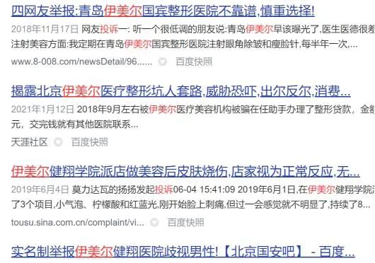 具体到伊美尔,据澎湃报道,近五年来伊美尔全国各地的分支机构发生的大大小小的医美事故至少几十余起,仅青岛的伊美尔国宾整形外科医院就至少发生6起医美事故。