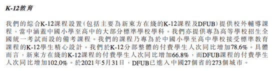 东方优播也曾是收入增长主力。2021财年,K-12分部整体的付费学生人次同比增加78.6%,其中东方优播的付费学生人次的同比增速超过新东方在线K-12课程,达102%,截至今年5月31日,东方优播已进入全国27个省的273个城市。